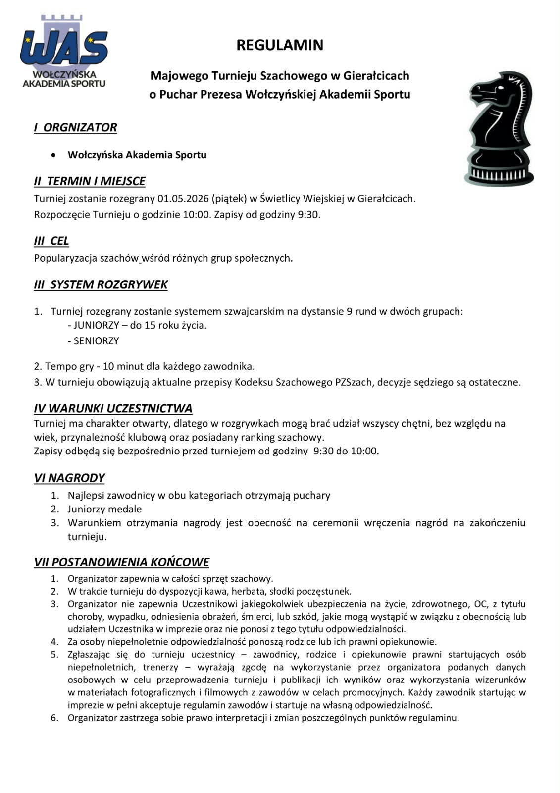 Informujemy, że uchwalono Regulamin Opolskiej Ligi Szachowej, który będzie obowiązywał od obecnego sezonu. Tym samym serdecznie zapraszamy wszystkie zainteresowane kluby do udziału w lidze. Pierwszy zjazd odbędzie się 21 lutego 2026 roku na Politechnice Opolskiej. Wszystkie informacje na temat ligi, regulaminy oraz komunikaty dostępne na stronie: >> Ligi Seniorów <<